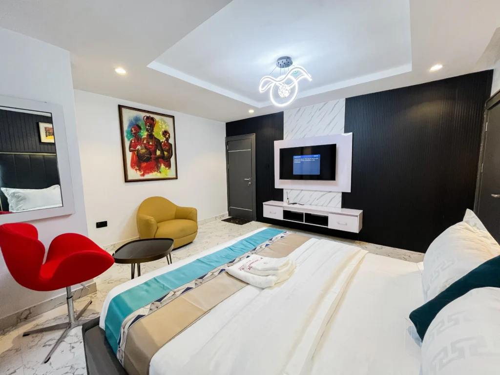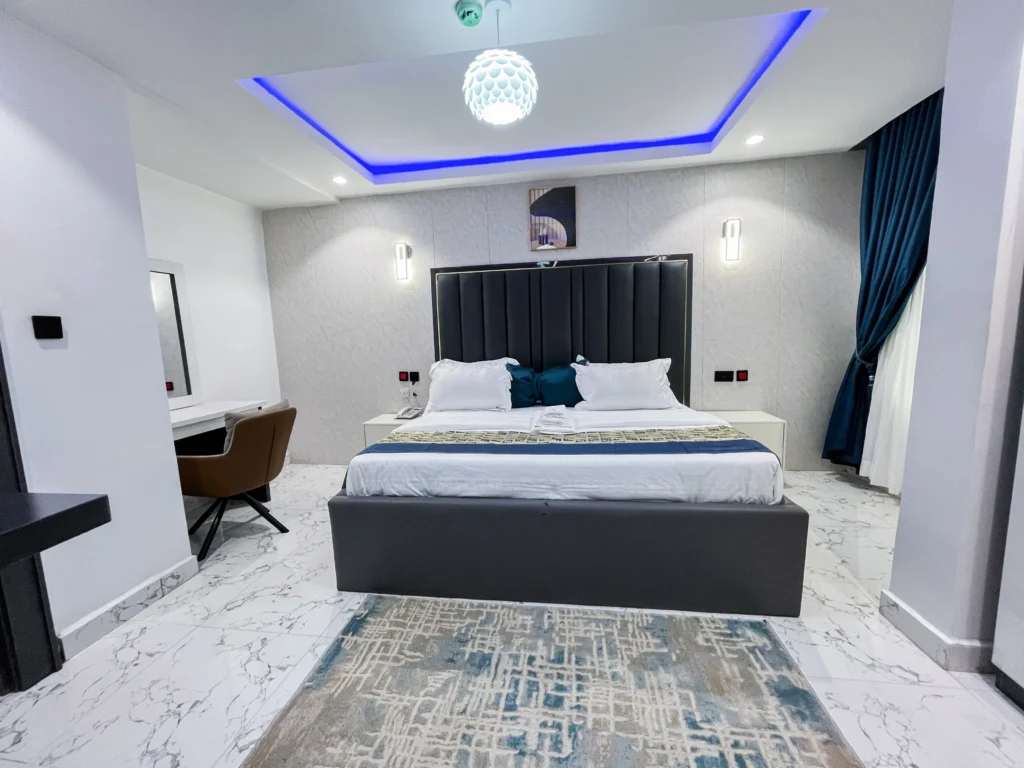 Welcome to the JRC One-Bedroom Sanctuary – London Room, where modern sophistication meets luxurious comfort at JRC Chariot Luxury Hotels and Apartments.